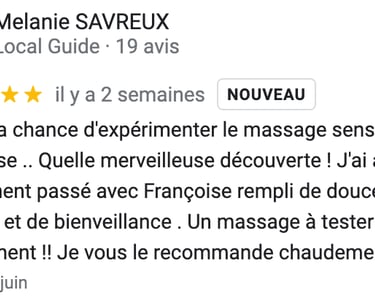 Un massage merveilleux , intuitif, favorisant la reconnexion au corps!
